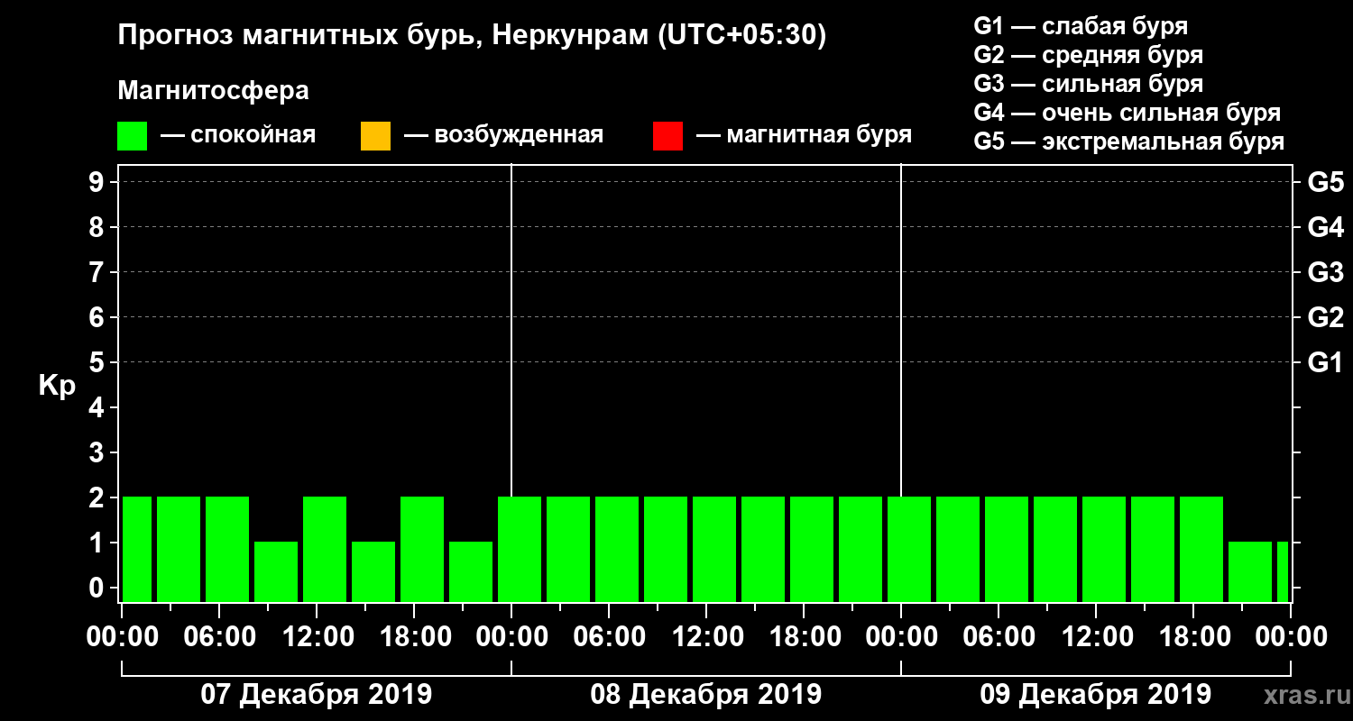 Прогноз магнитных бурь в Неркунраме — 7 декабря 2019 года
