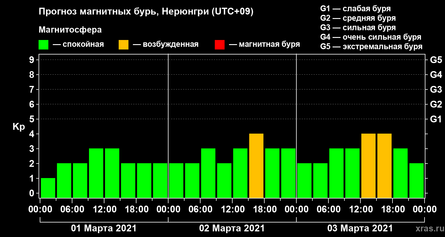 Прогноз магнитных бурь Нерюнгри — 1 марта 2021 года