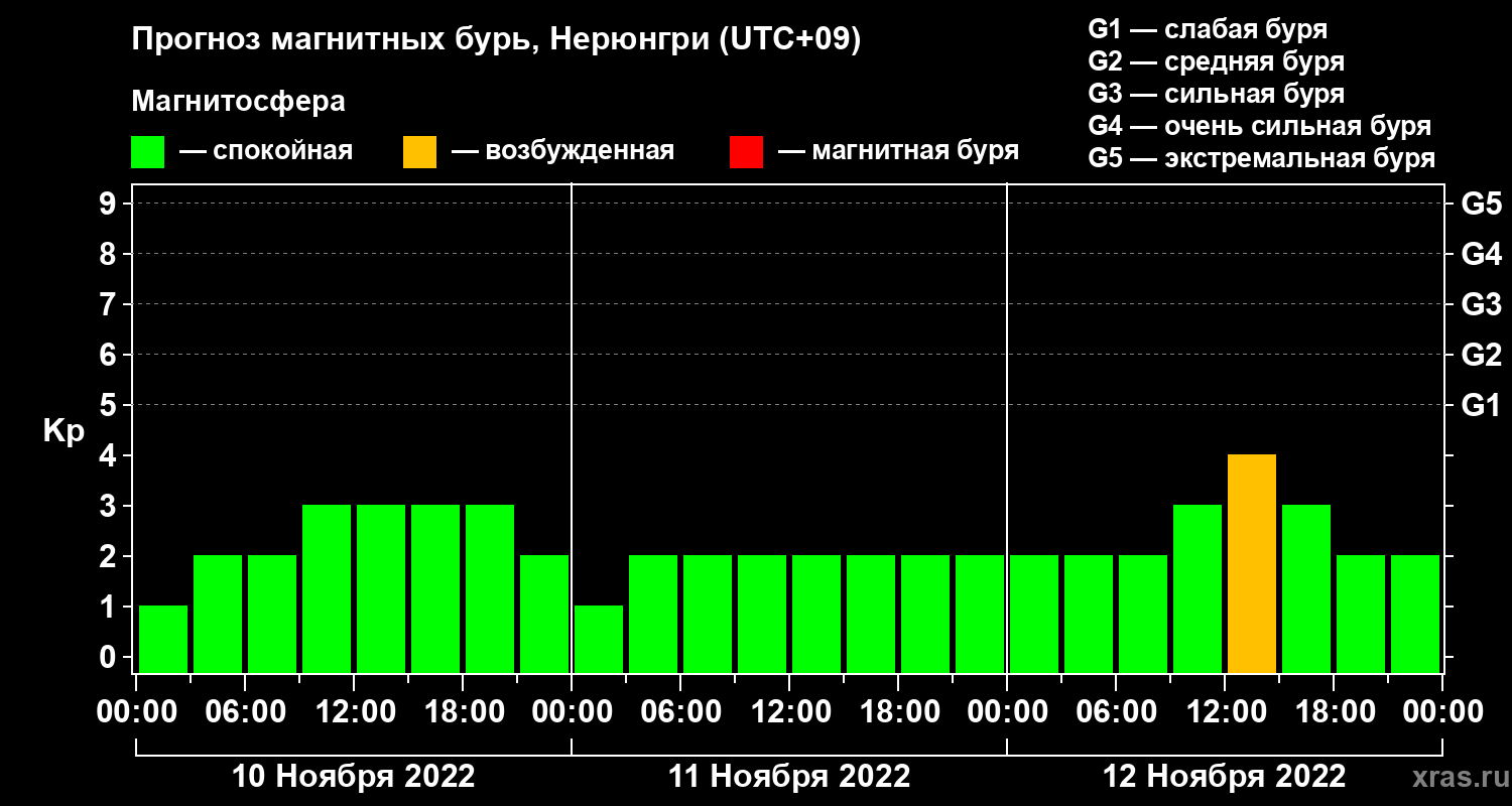 Прогноз магнитных бурь Нерюнгри — 10 ноября 2022 года
