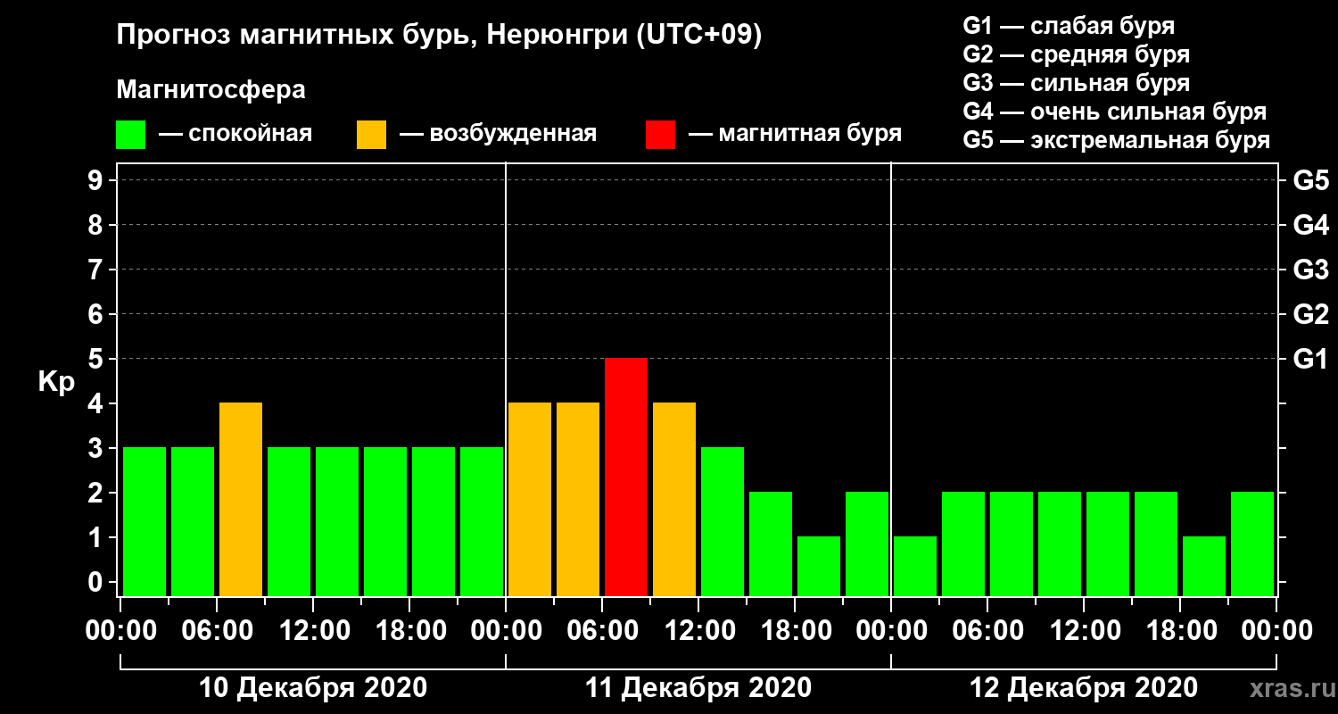 Прогноз магнитных бурь Нерюнгри — 10 декабря 2020 года