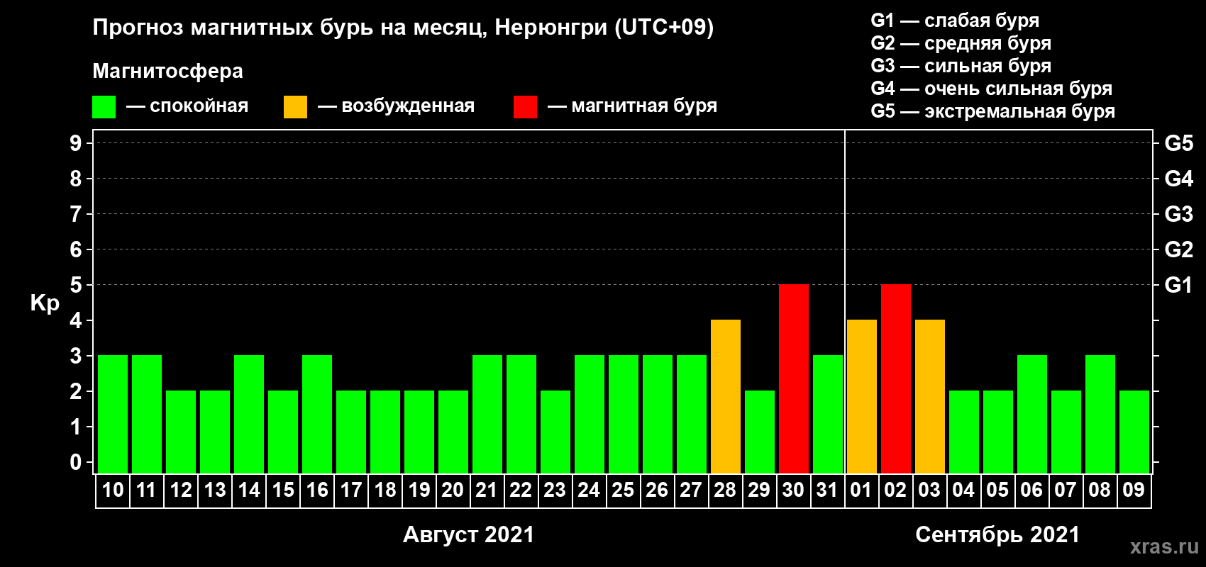 Прогноз магнитных бурь Нерюнгри — 10 августа 2021 года