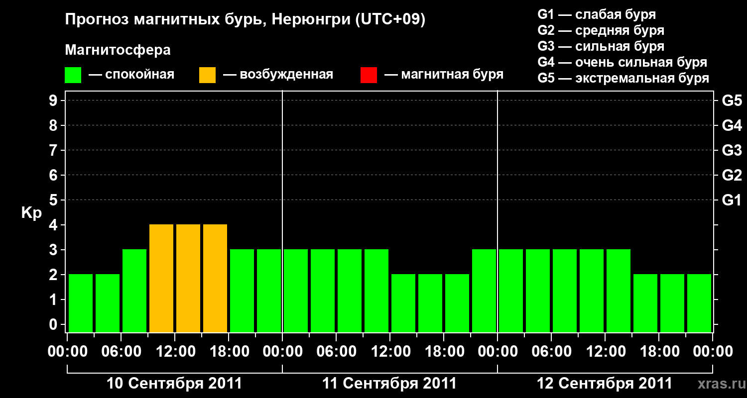 Прогноз магнитных бурь Нерюнгри — 10 сентября 2011 года