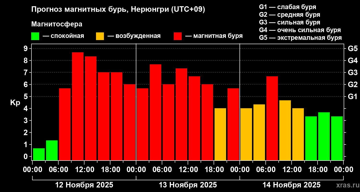 Прогноз магнитных бурь Нерюнгри на 12 ноября 2025 года