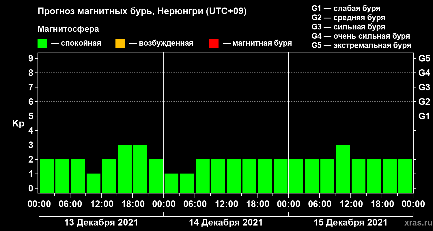 Прогноз магнитных бурь Нерюнгри — 13 декабря 2021 года