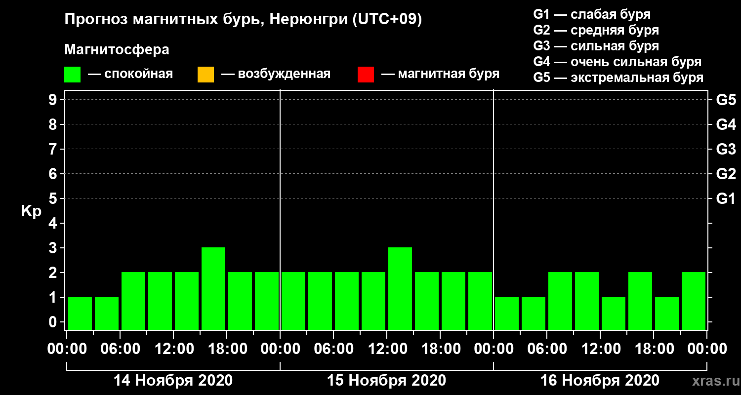 Прогноз магнитных бурь Нерюнгри — 14 ноября 2020 года