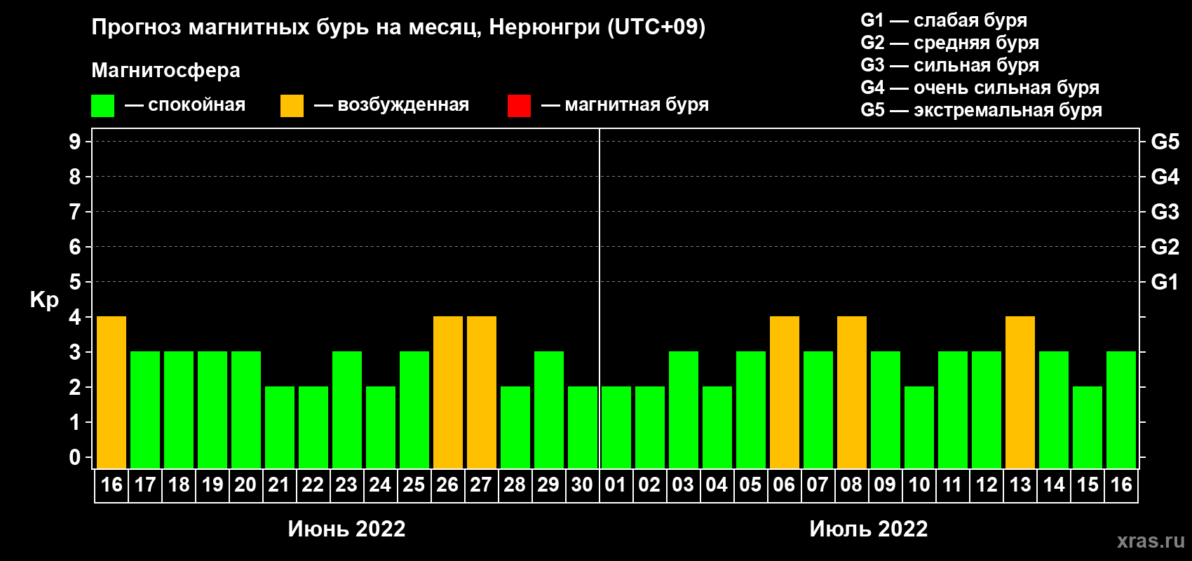 Прогноз магнитных бурь Нерюнгри — 16 июня 2022 года