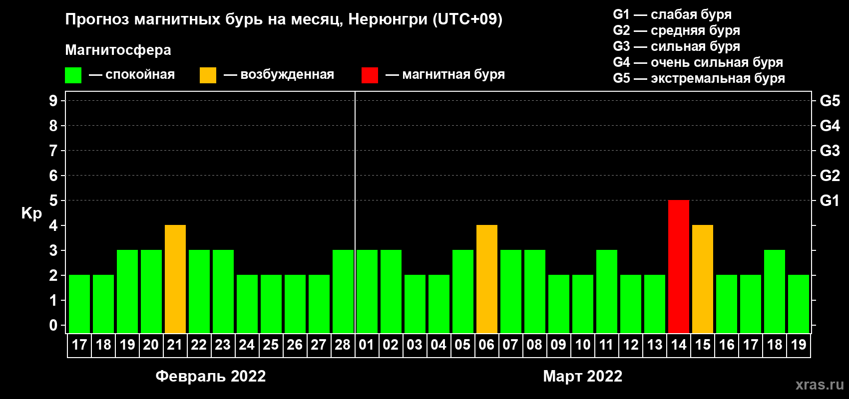 Прогноз магнитных бурь Нерюнгри — 17 февраля 2022 года