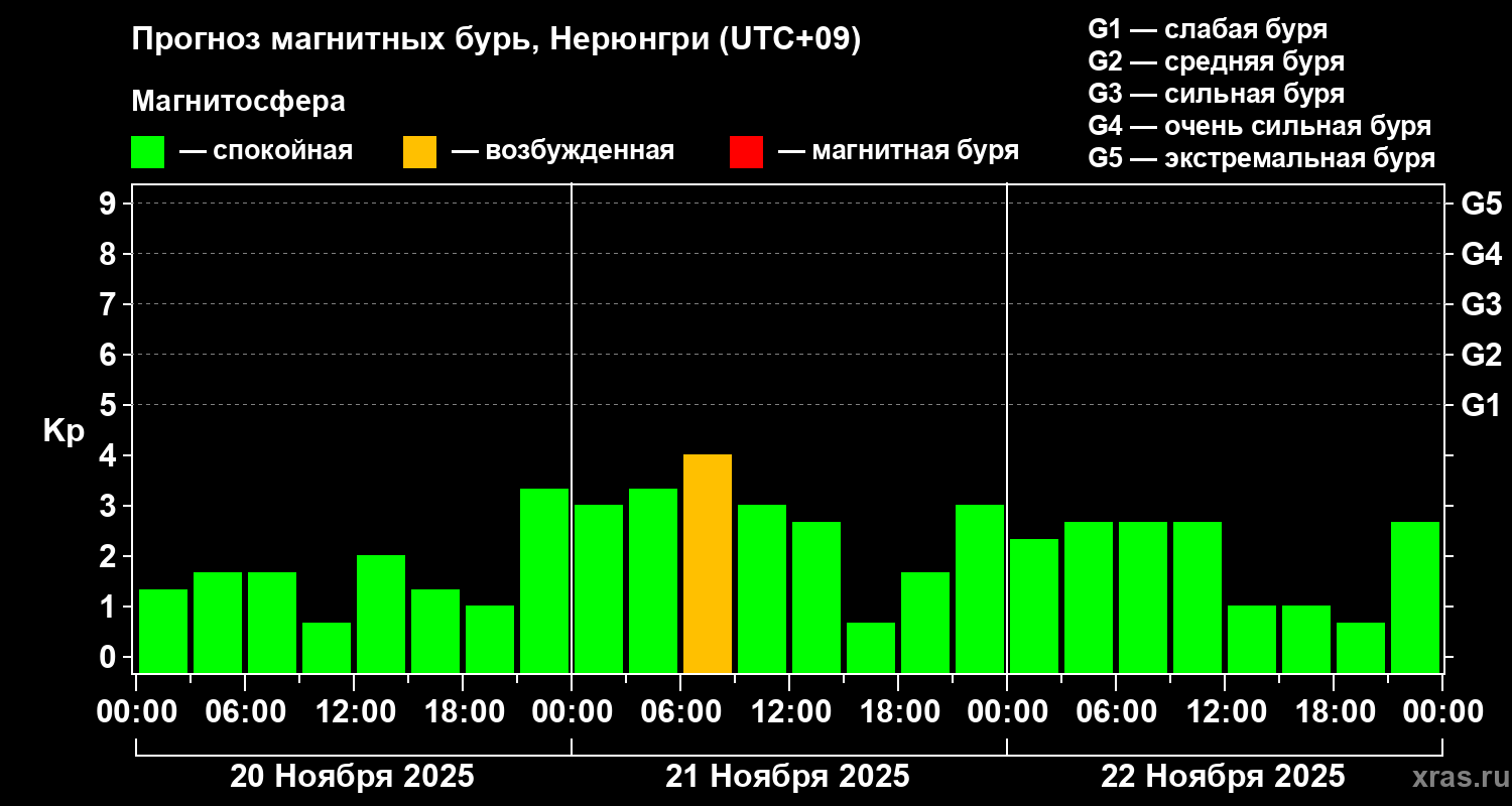 Прогноз магнитных бурь Нерюнгри на 20 ноября 2025 года