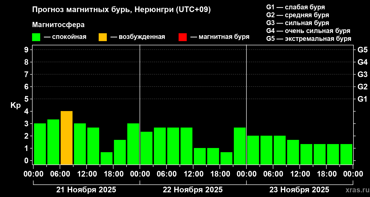 Прогноз магнитных бурь Нерюнгри — 21 ноября 2025 года