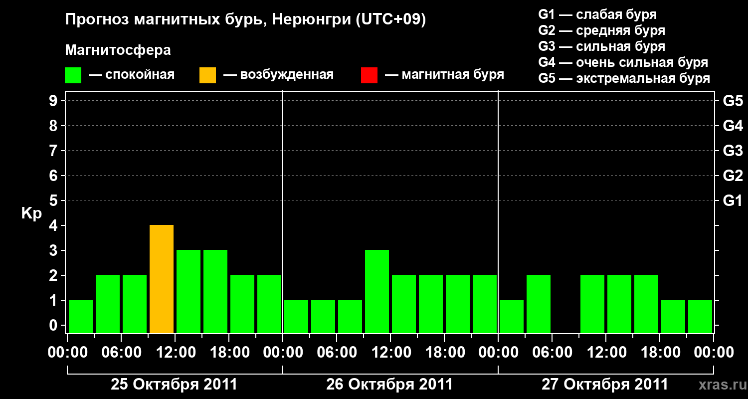 Прогноз магнитных бурь Нерюнгри — 25 октября 2011 года