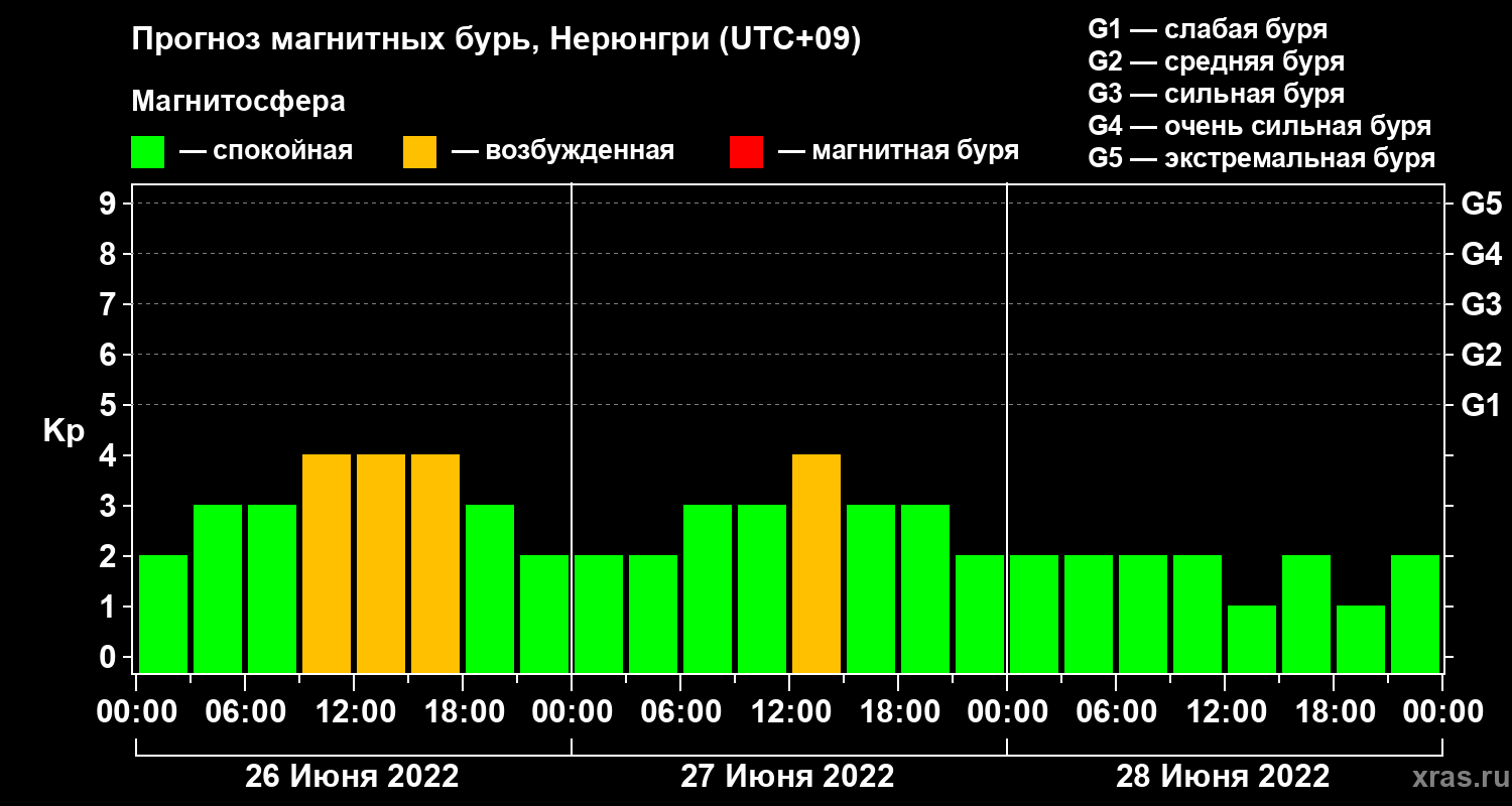 Прогноз магнитных бурь Нерюнгри — 26 июня 2022 года