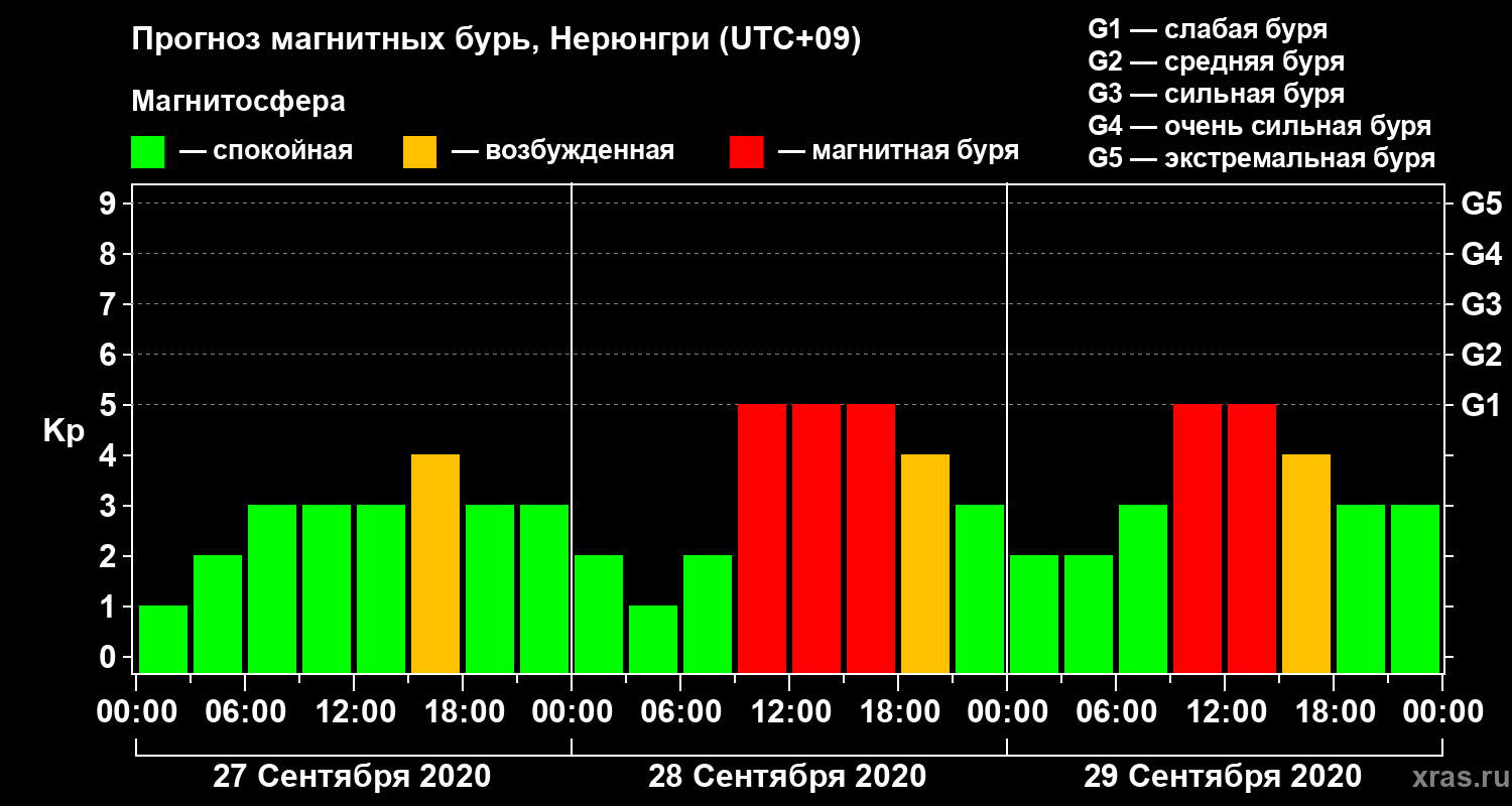 Прогноз магнитных бурь Нерюнгри — 27 сентября 2020 года