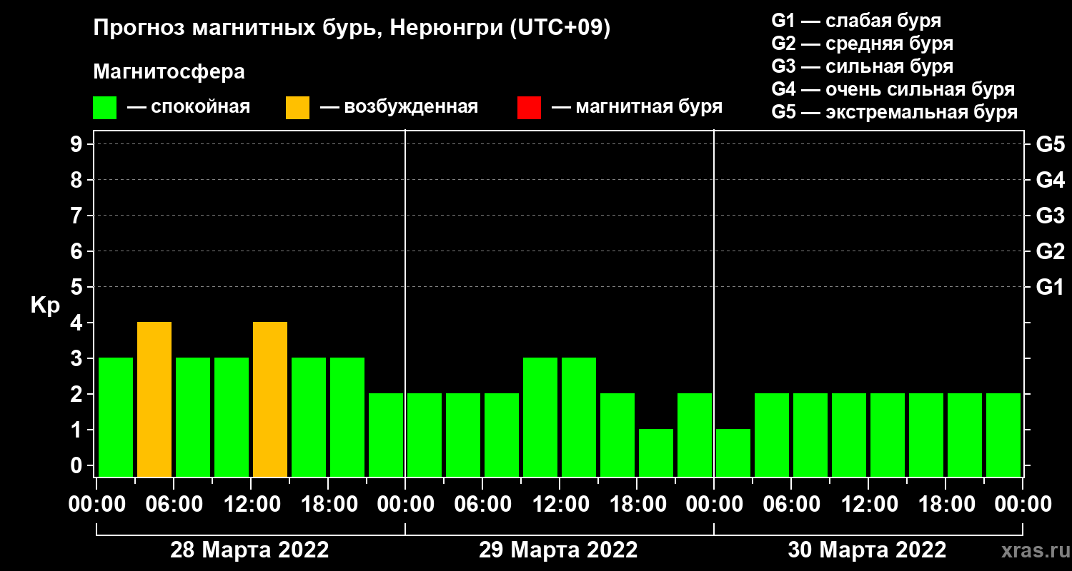 Прогноз магнитных бурь Нерюнгри на 28 марта 2022 года