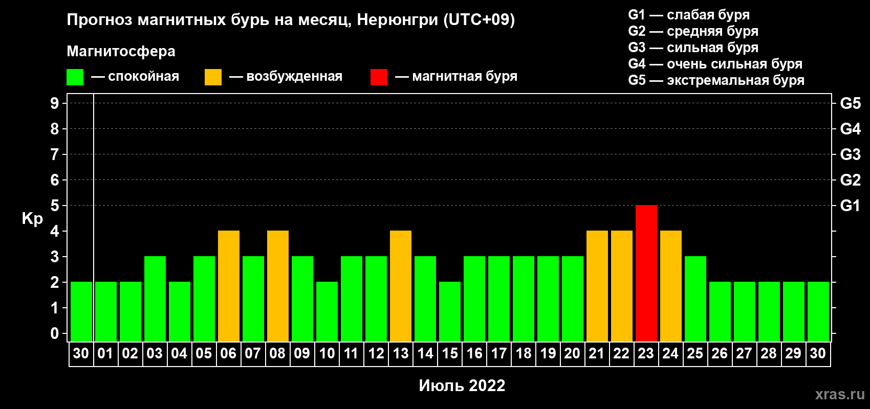 Прогноз магнитных бурь Нерюнгри — 30 июня 2022 года