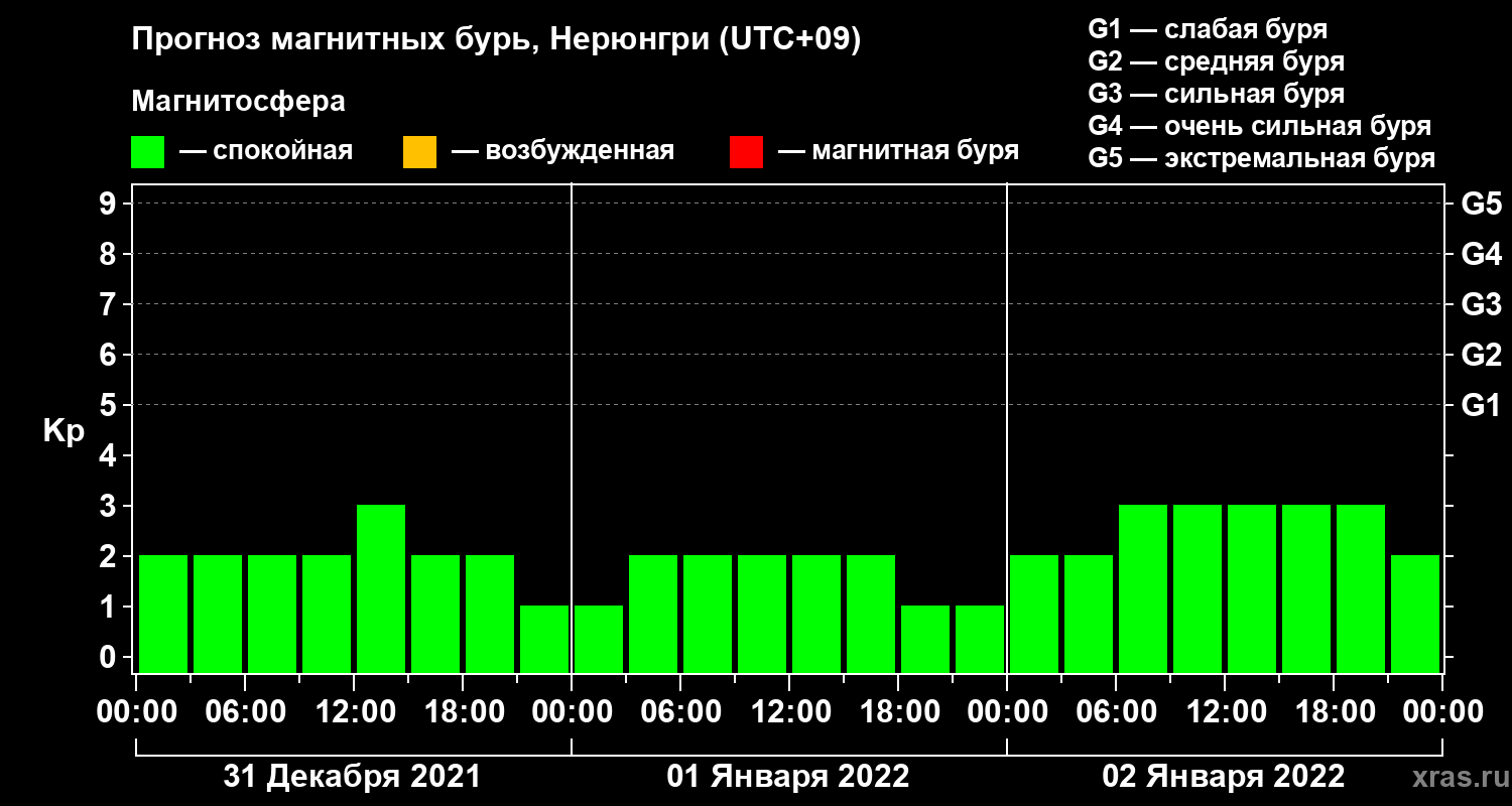 Прогноз магнитных бурь Нерюнгри — 31 декабря 2021 года