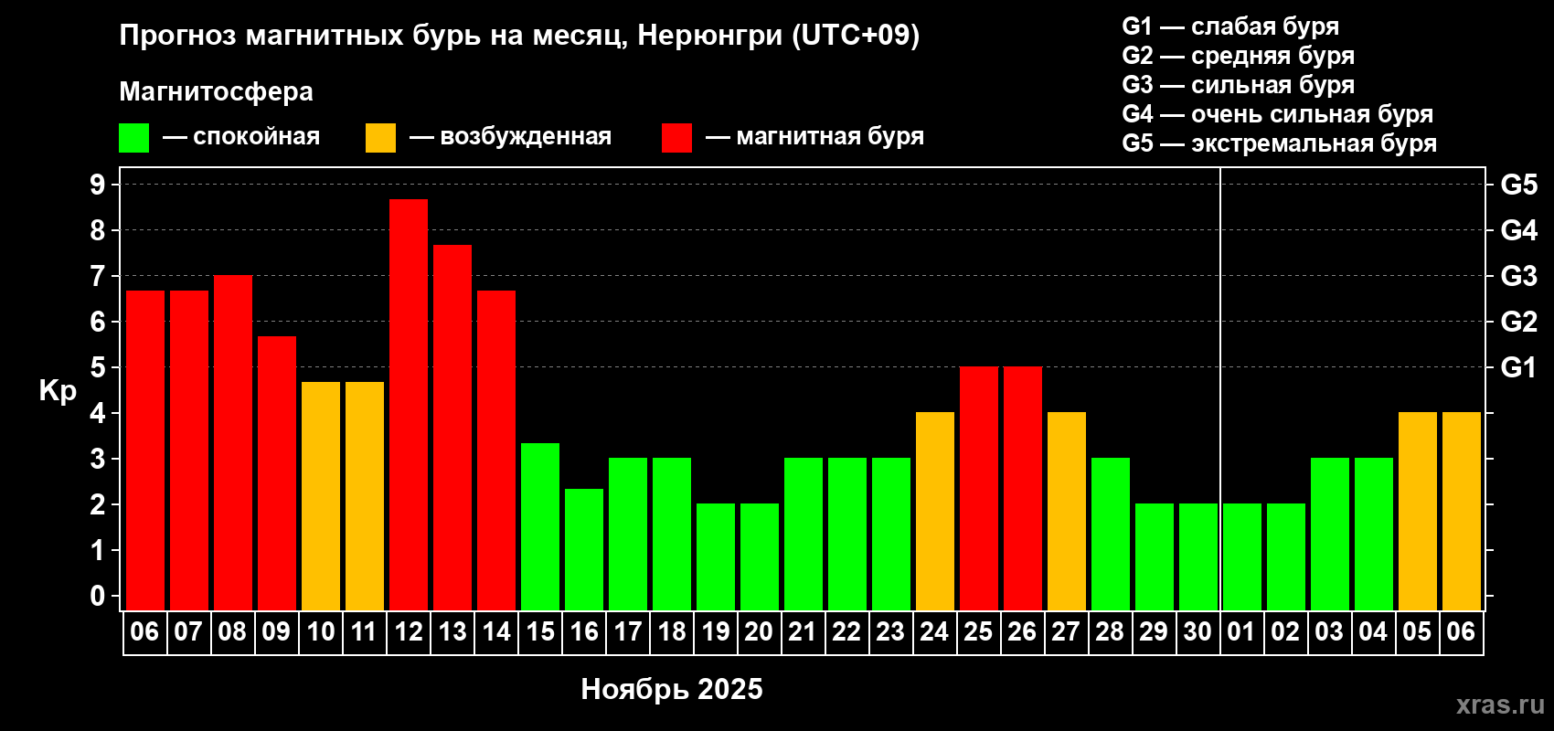 Прогноз магнитных бурь Нерюнгри на 6 ноября 2025 года