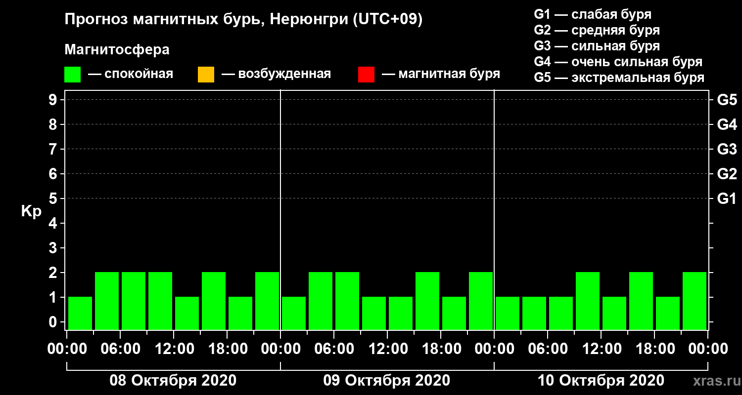 Прогноз магнитных бурь Нерюнгри — 8 октября 2020 года