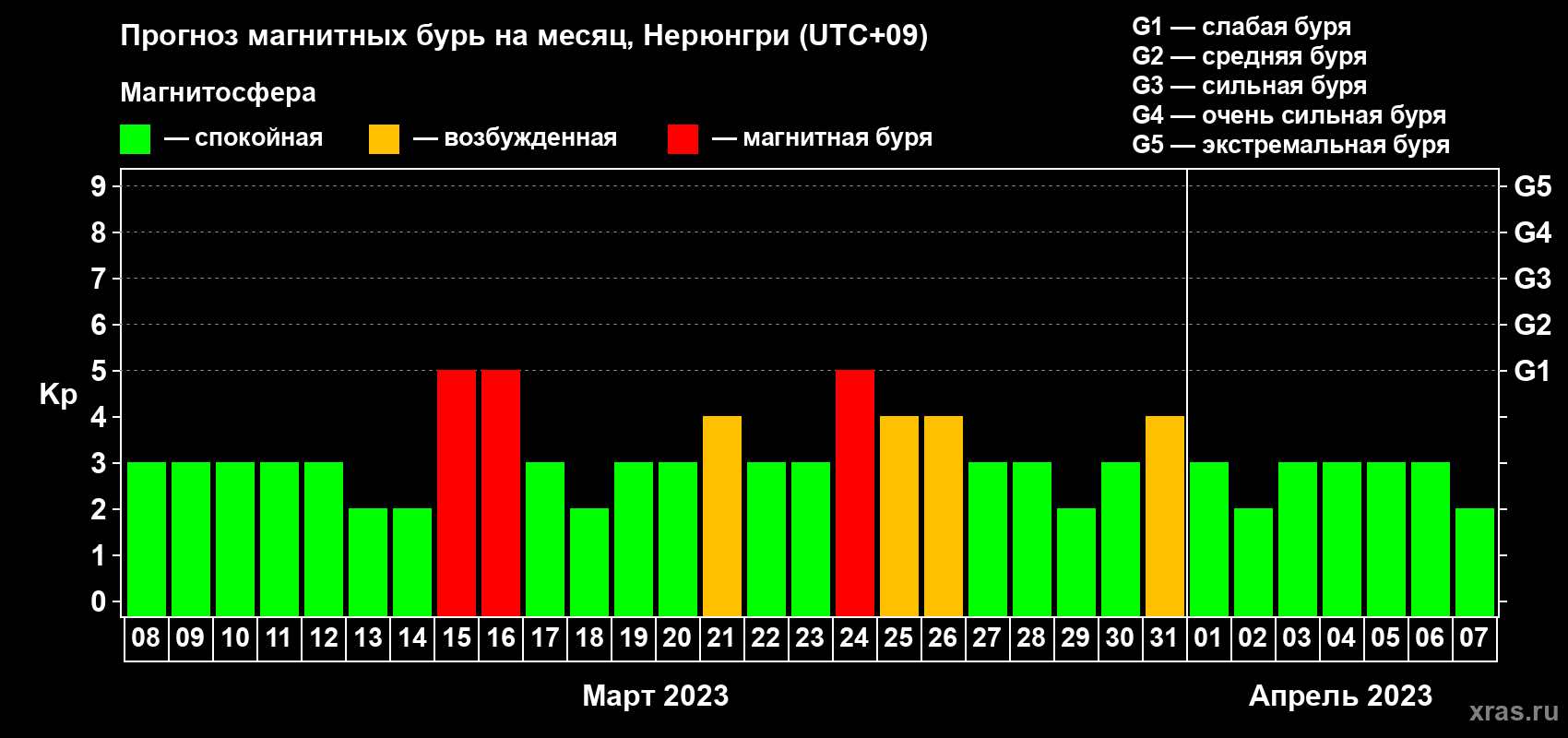 Прогноз магнитных бурь Нерюнгри — 8 марта 2023 года