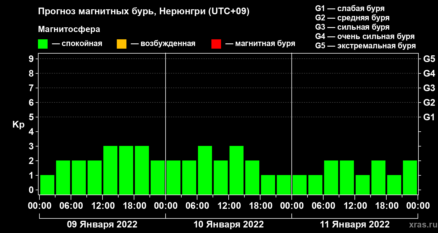 Прогноз магнитных бурь Нерюнгри — 9 января 2022 года