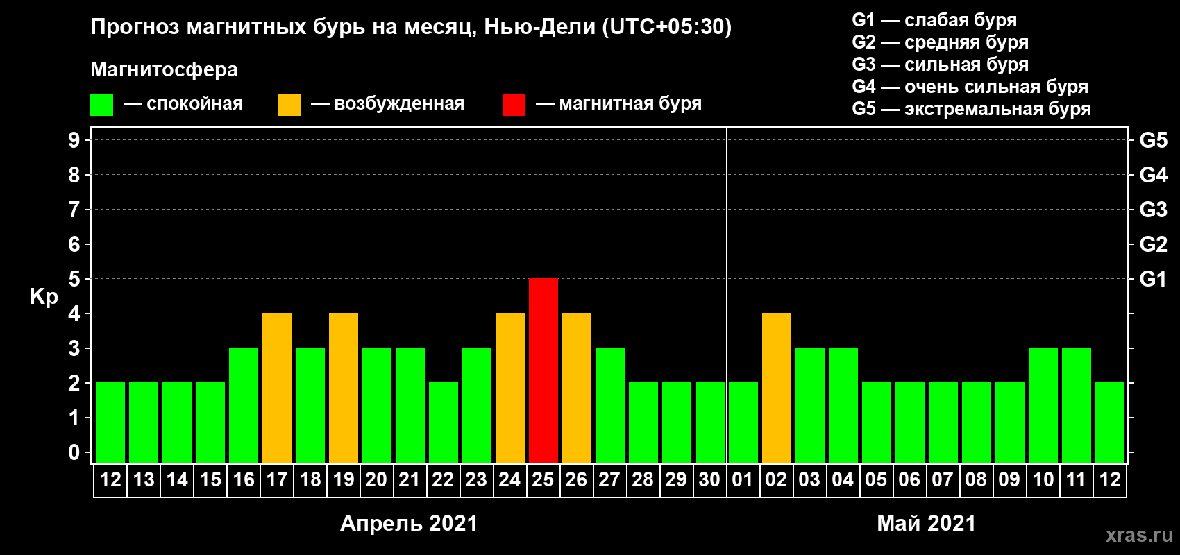 Прогноз магнитных бурь Нью-Дели — 12 апреля 2021 года
