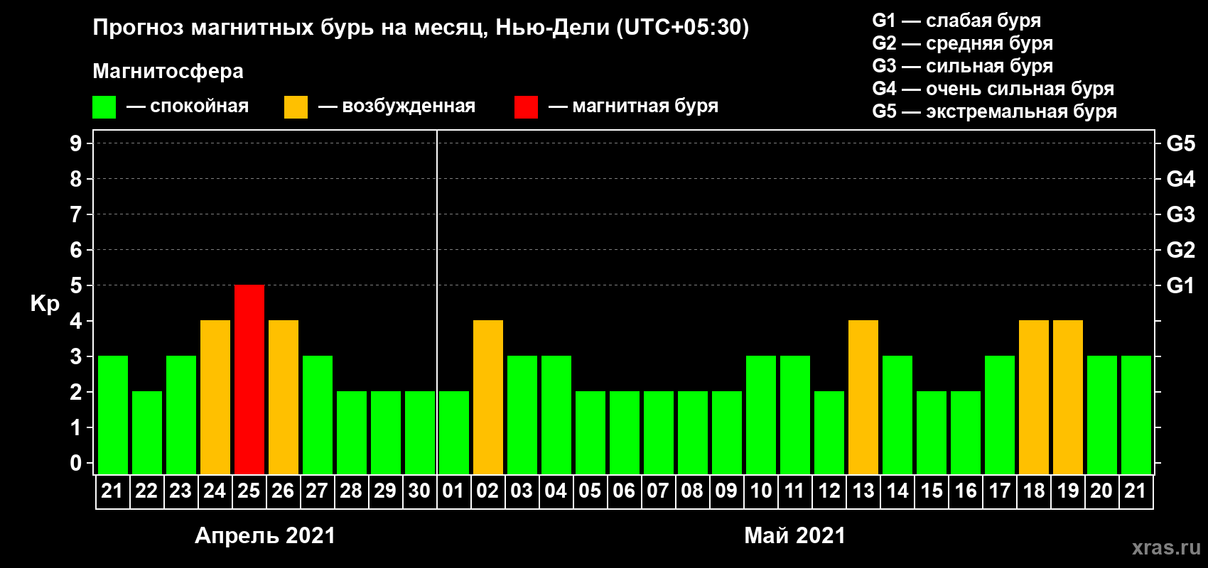 Прогноз магнитных бурь Нью-Дели — 21 апреля 2021 года