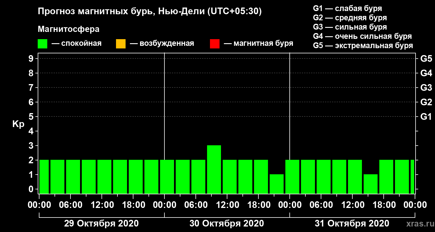 Прогноз магнитных бурь Нью-Дели — 29 октября 2020 года