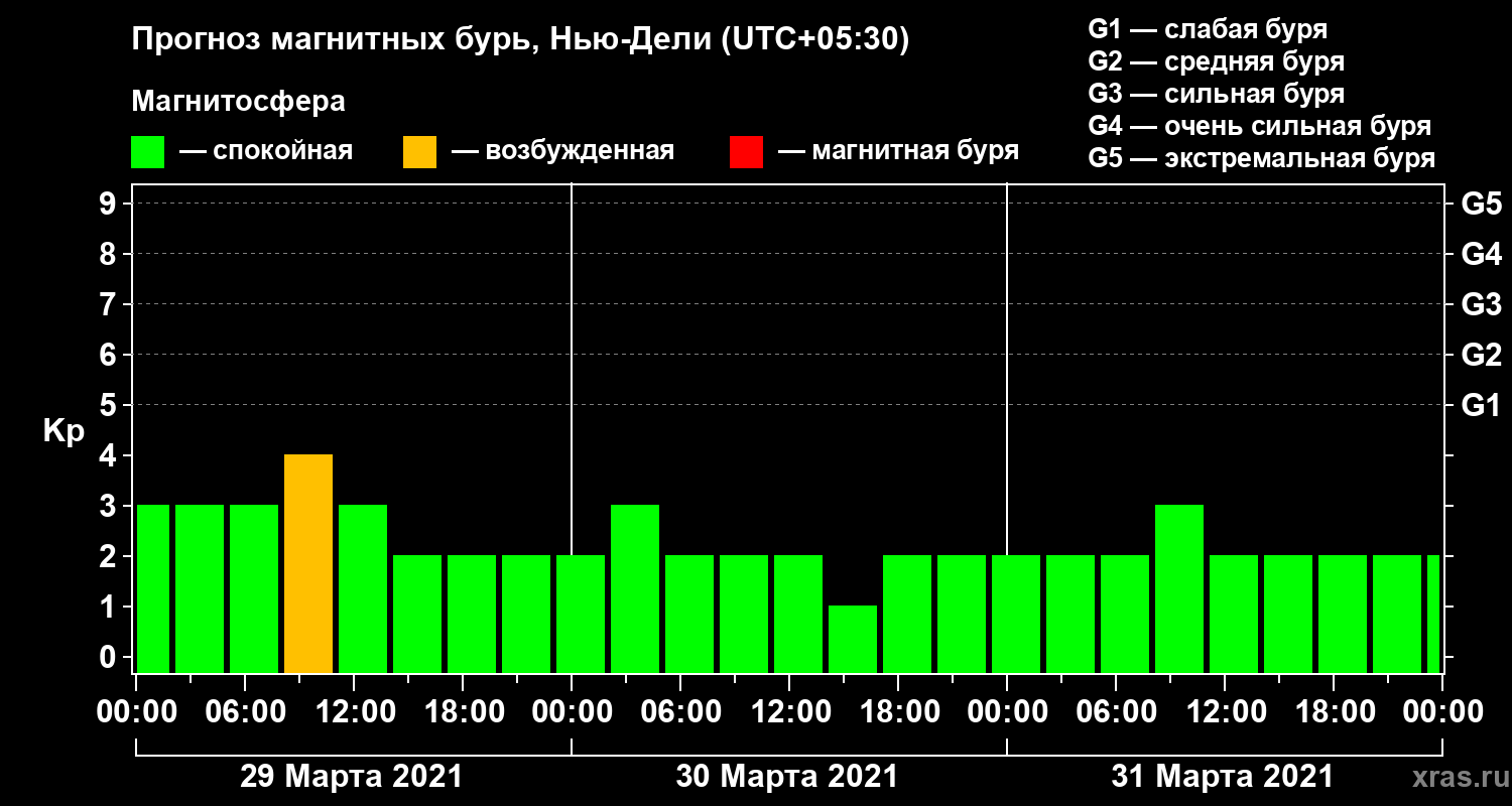 Прогноз магнитных бурь Нью-Дели — 29 марта 2021 года
