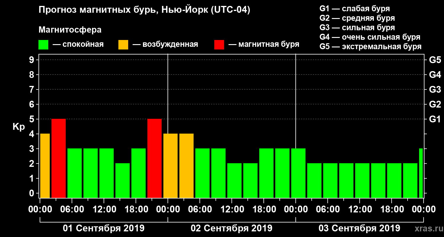Прогноз магнитных бурь в Нью-Йорке — 1 сентября 2019 года