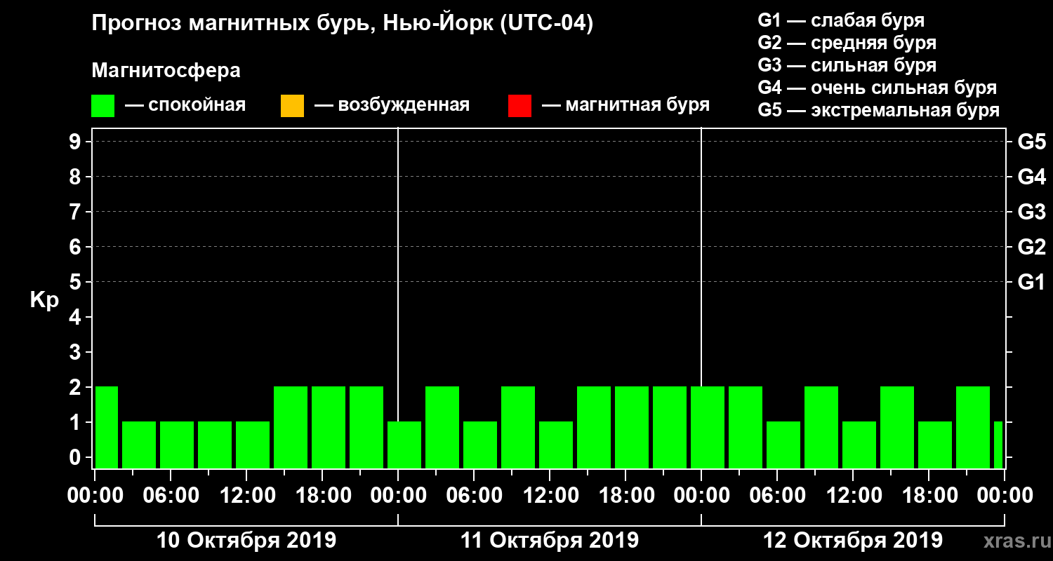 Прогноз магнитных бурь в Нью-Йорке — 10 октября 2019 года