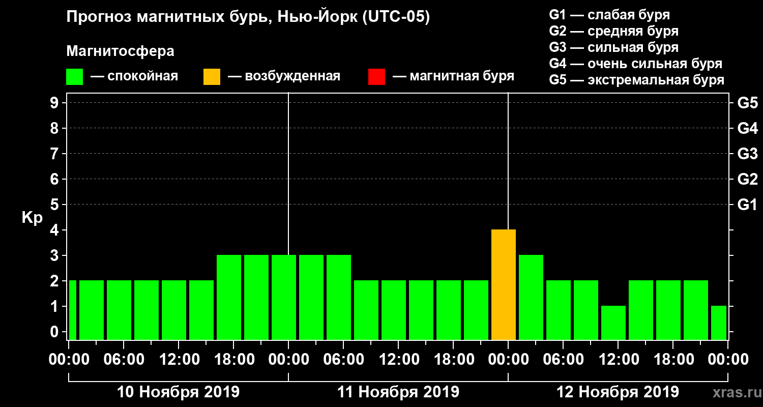 Прогноз магнитных бурь в Нью-Йорке — 10 ноября 2019 года