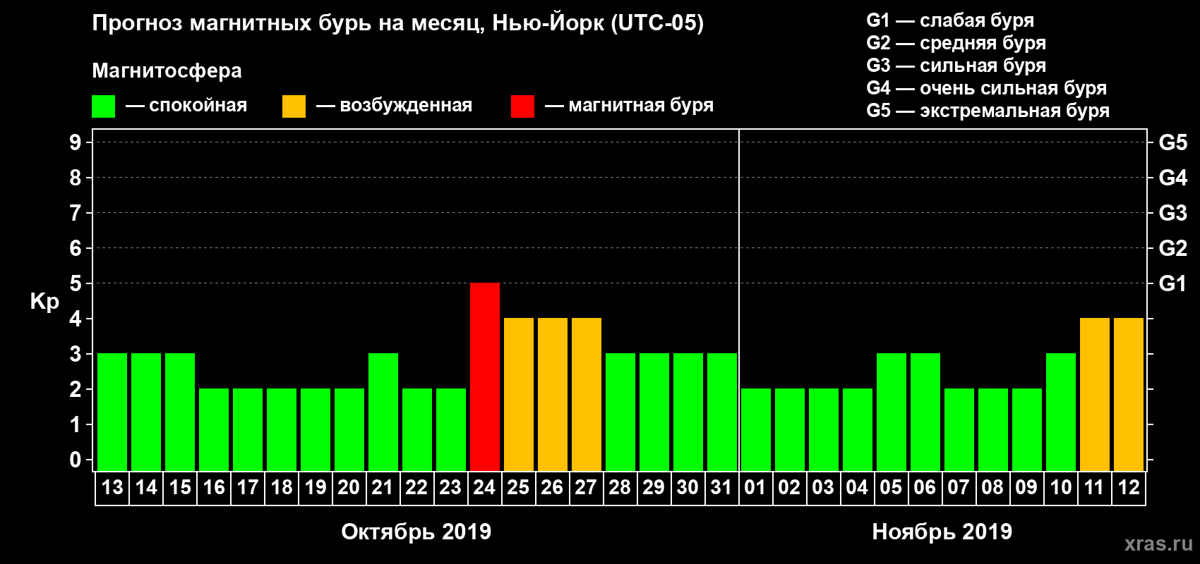 Прогноз магнитных бурь в Нью-Йорке — 13 октября 2019 года