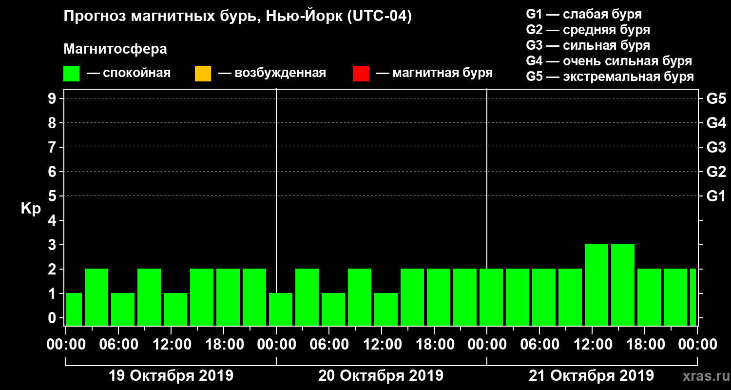 Прогноз магнитных бурь в Нью-Йорке — 19 октября 2019 года