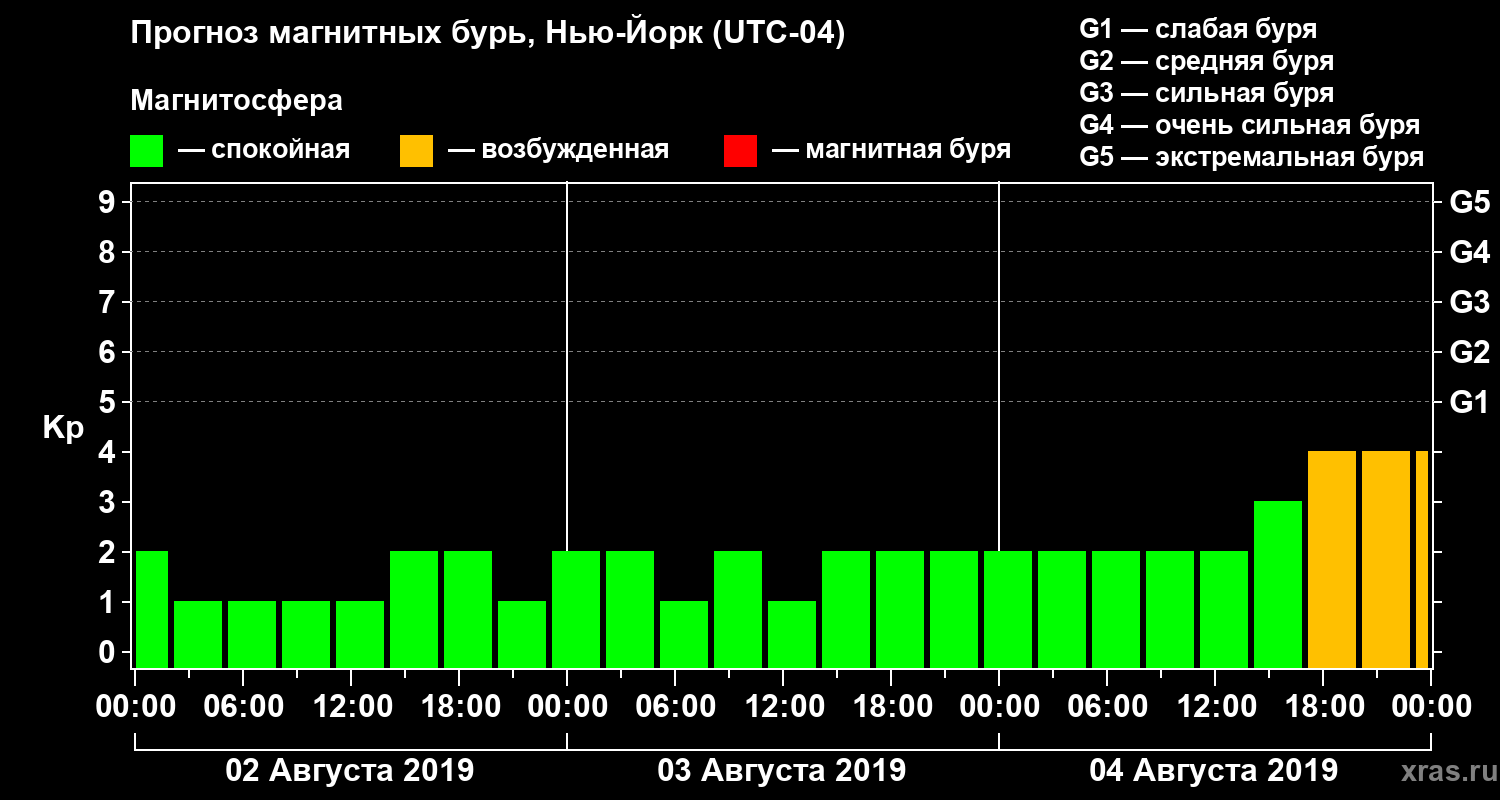 Прогноз магнитных бурь в Нью-Йорке — 2 августа 2019 года