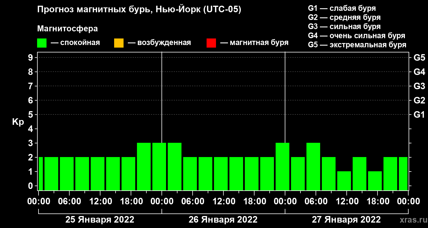 Прогноз магнитных бурь в Нью-Йорке — 25 января 2022 года