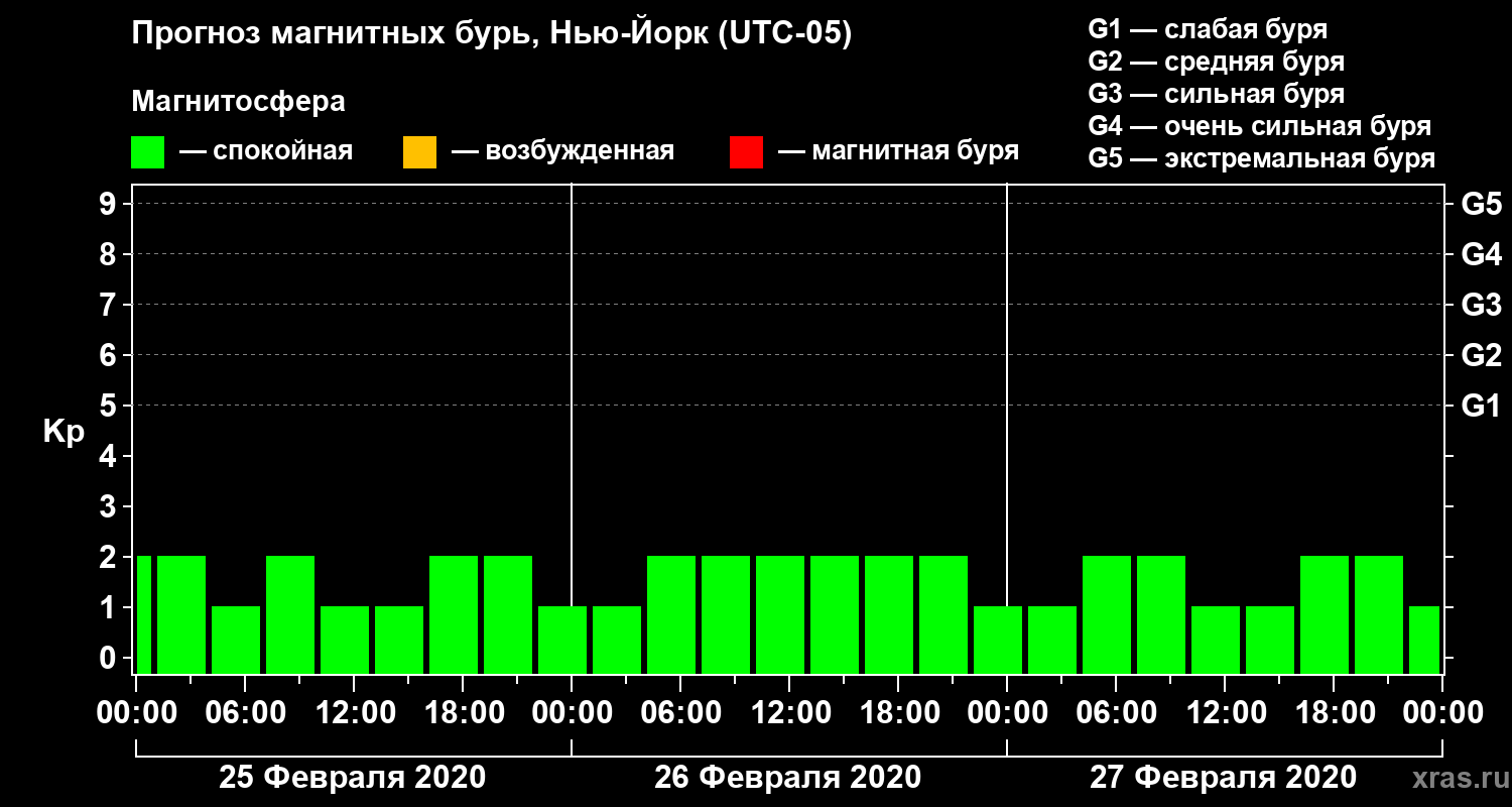 Прогноз магнитных бурь в Нью-Йорке — 25 февраля 2020 года