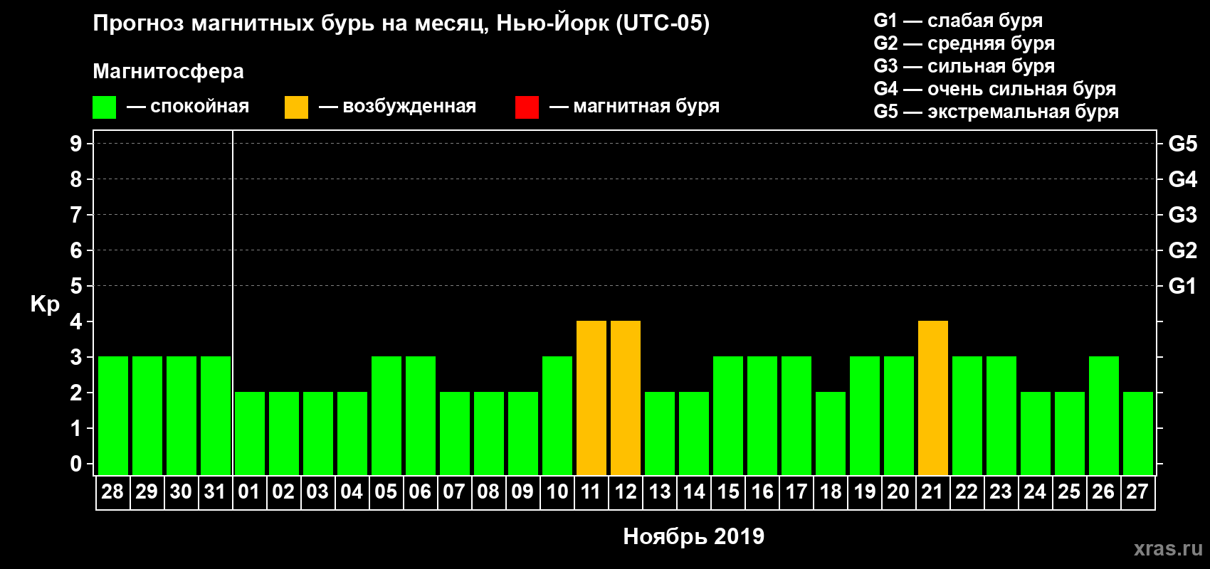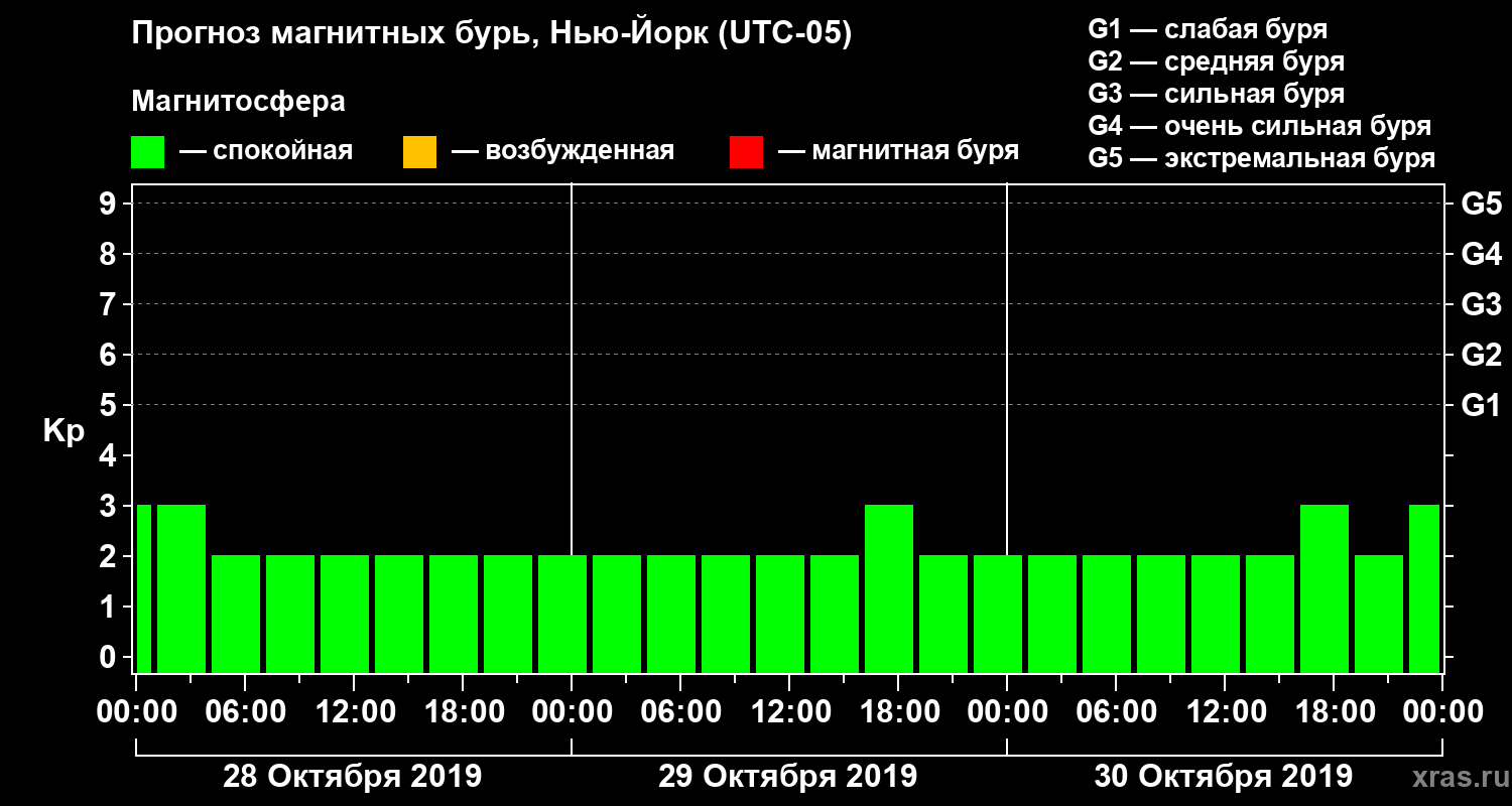 Прогноз магнитных бурь в Нью-Йорке — 28 октября 2019 года