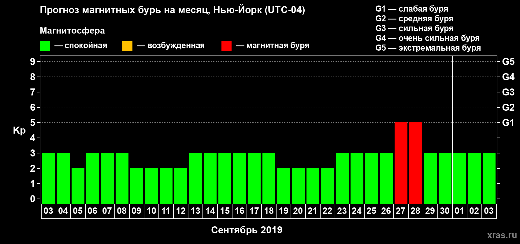 Прогноз магнитных бурь в Нью-Йорке — 3 сентября 2019 года