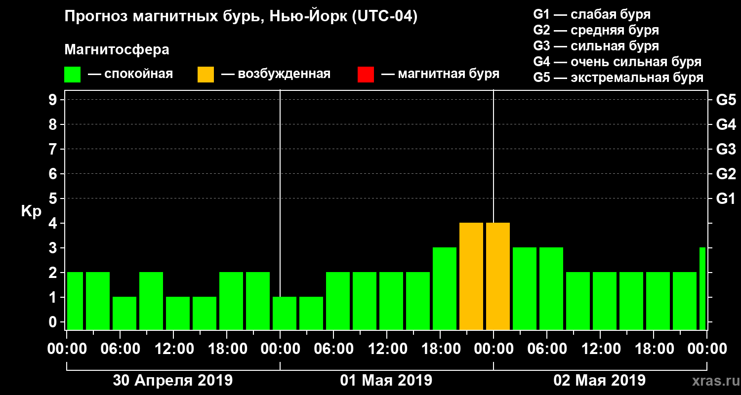 Прогноз магнитных бурь в Нью-Йорке на 30 апреля 2019 года