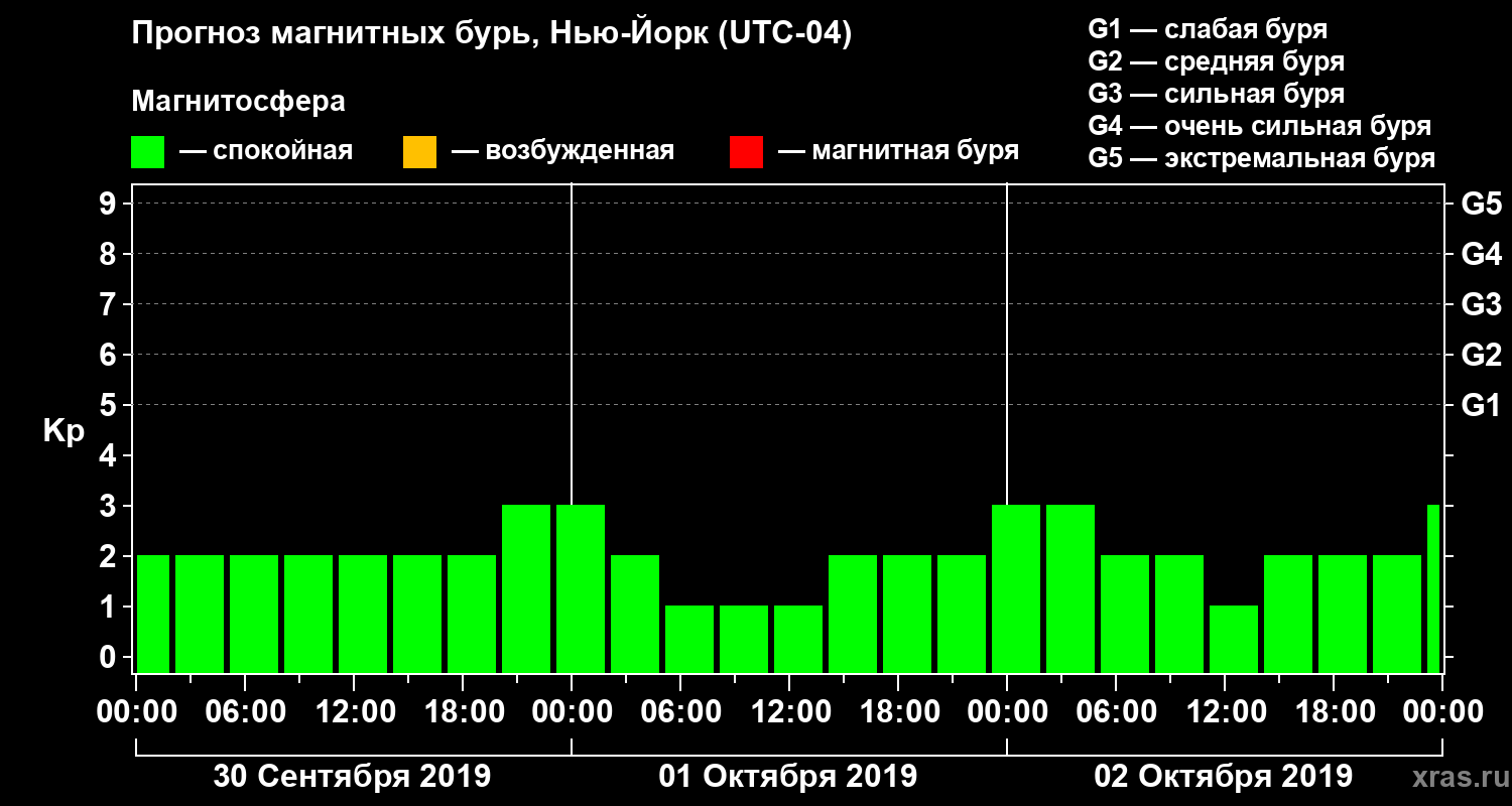 Прогноз магнитных бурь в Нью-Йорке — 30 сентября 2019 года