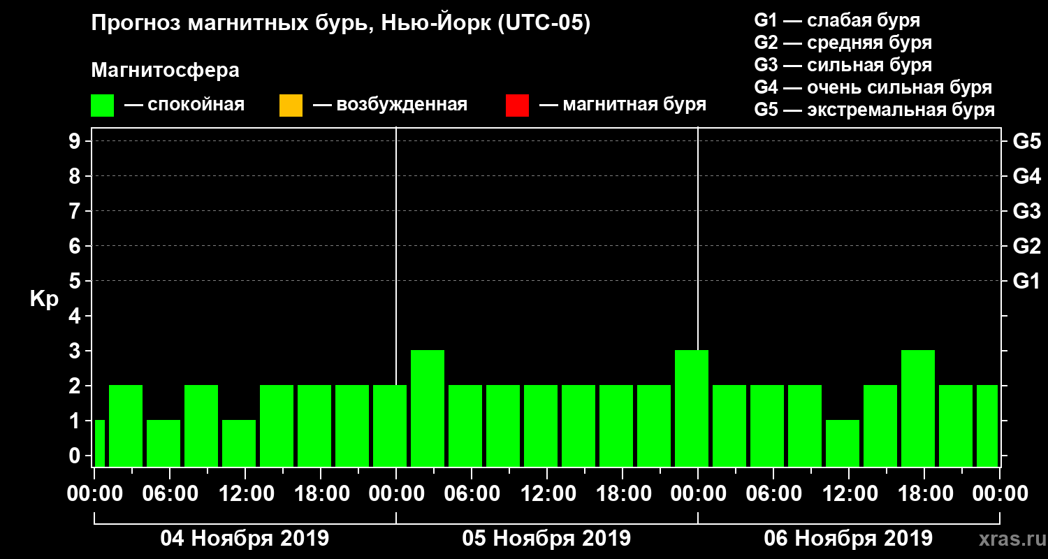 Прогноз магнитных бурь в Нью-Йорке — 4 ноября 2019 года