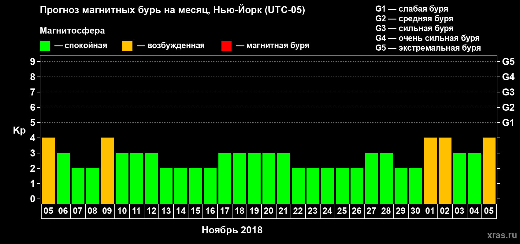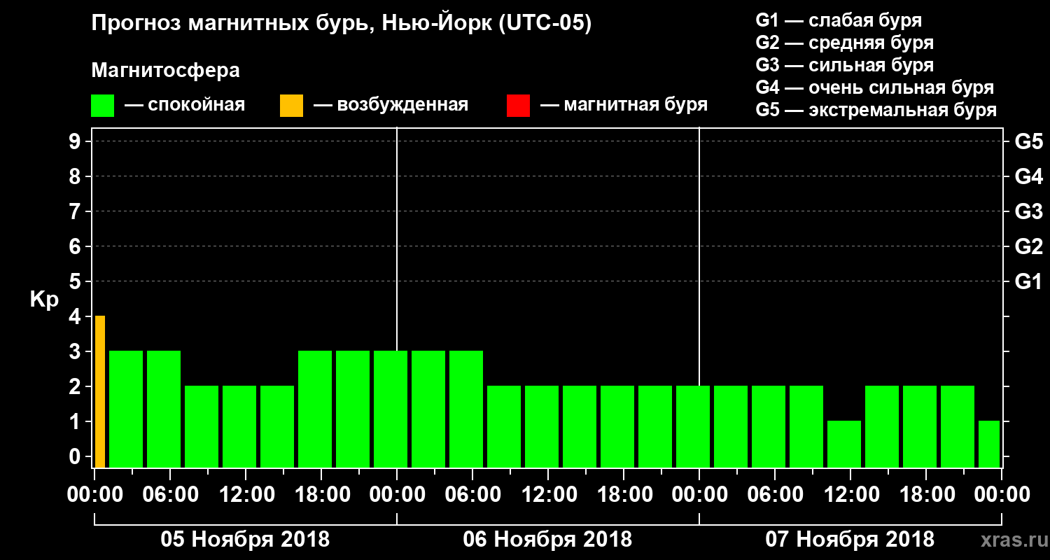 Прогноз магнитных бурь в Нью-Йорке — 5 ноября 2018 года
