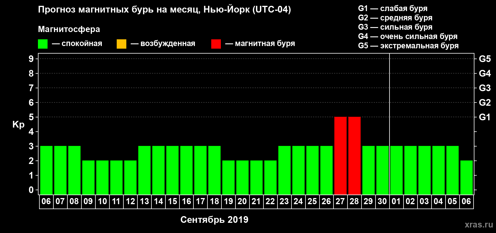 Прогноз магнитных бурь в Нью-Йорке — 6 сентября 2019 года
