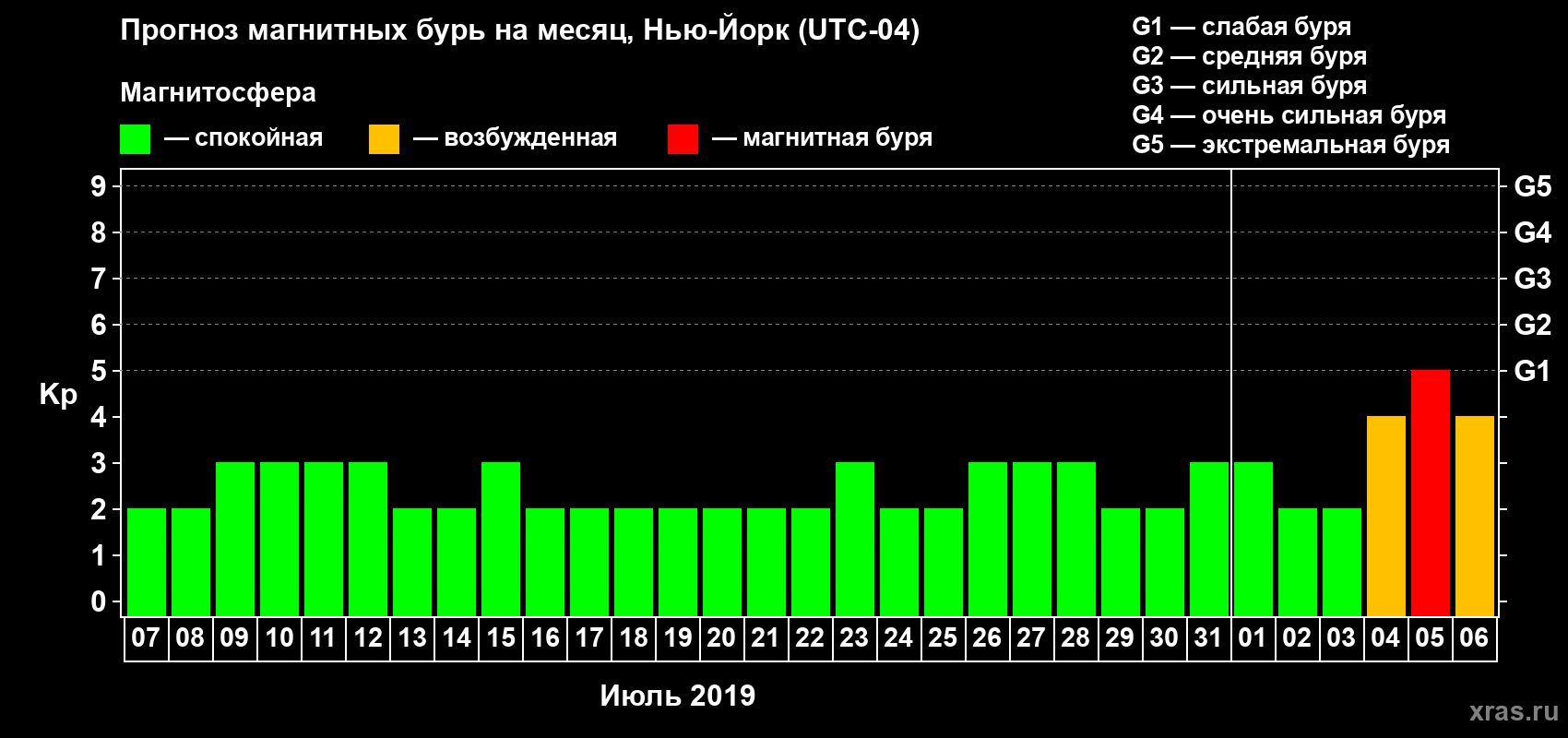 Прогноз магнитных бурь в Нью-Йорке — 7 июля 2019 года