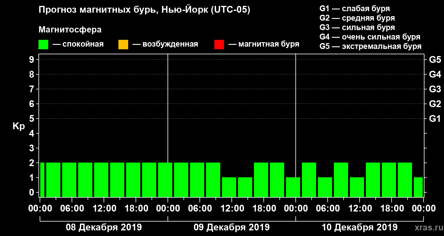 Прогноз магнитных бурь в Нью-Йорке — 8 декабря 2019 года