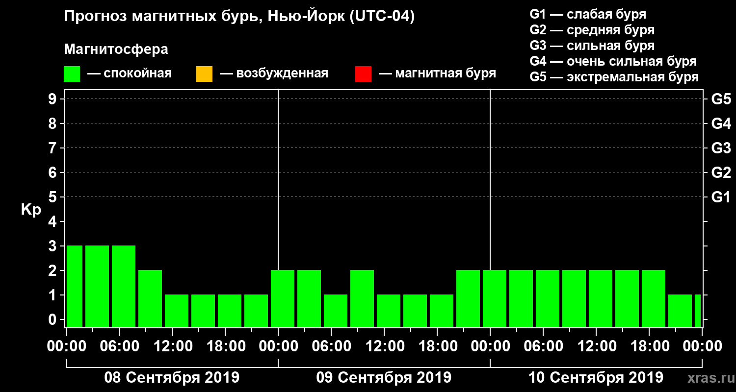 Прогноз магнитных бурь в Нью-Йорке — 8 сентября 2019 года