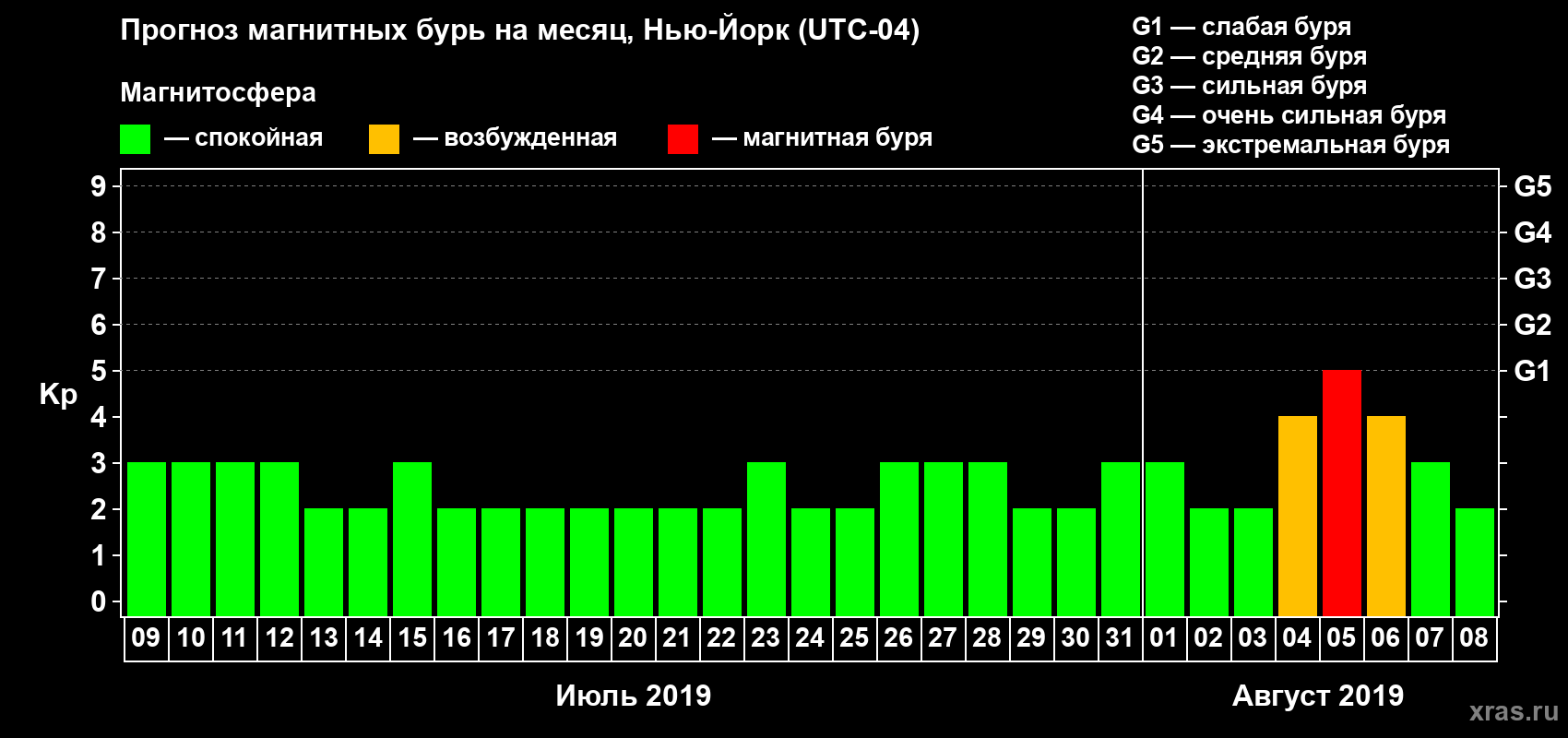 Прогноз магнитных бурь в Нью-Йорке — 9 июля 2019 года