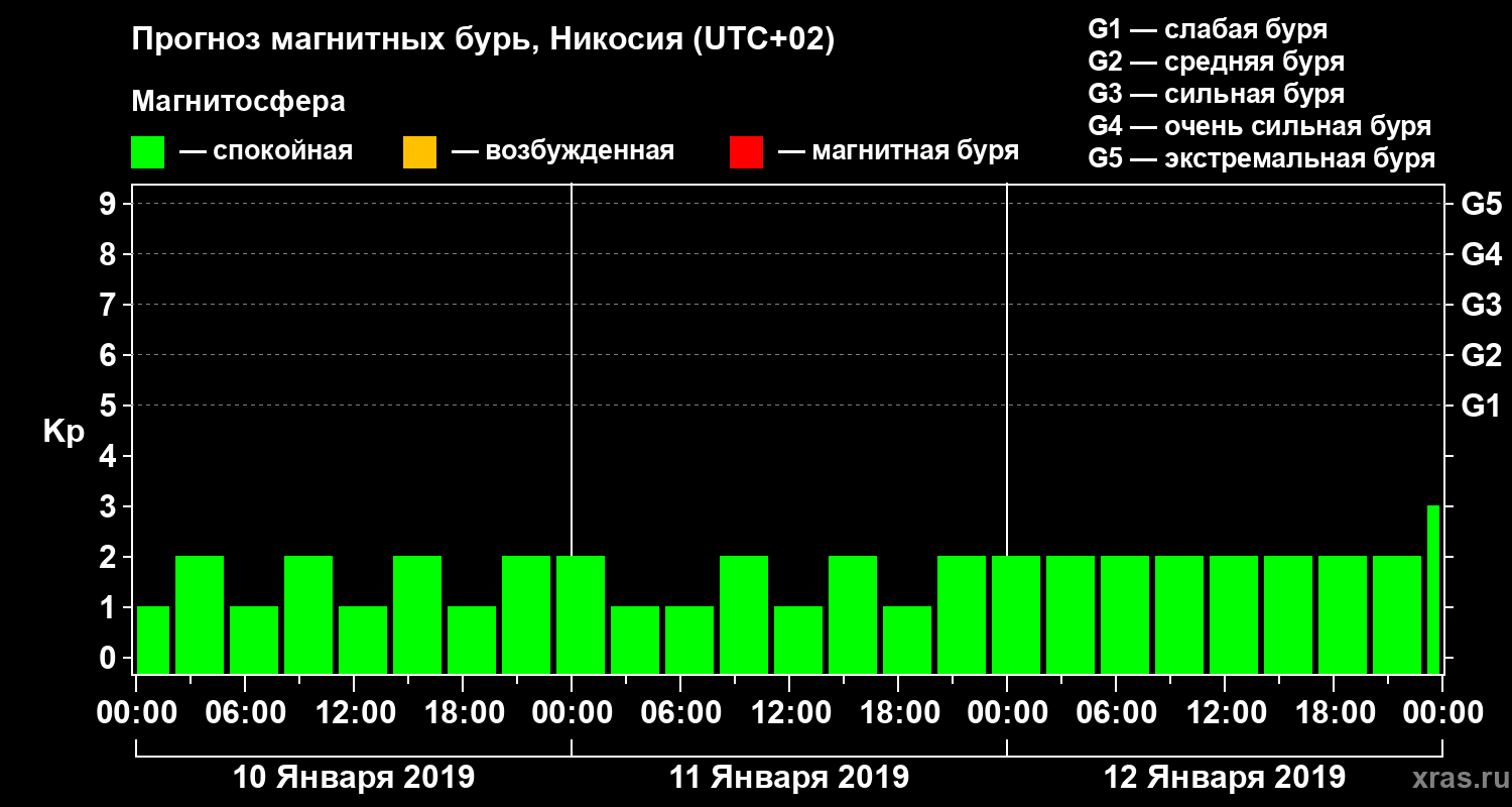 Прогноз магнитных бурь в Никосии — 10 января 2019 года