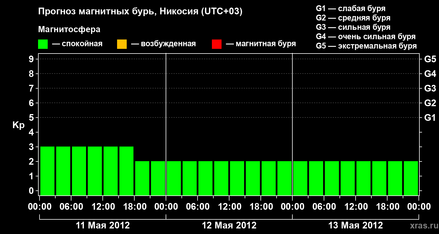 Прогноз магнитных бурь в Никосии — 11 мая 2012 года