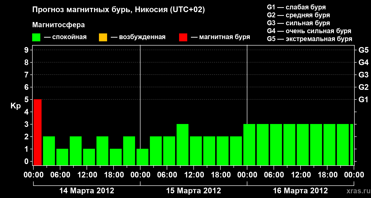 Прогноз магнитных бурь в Никосии — 14 марта 2012 года