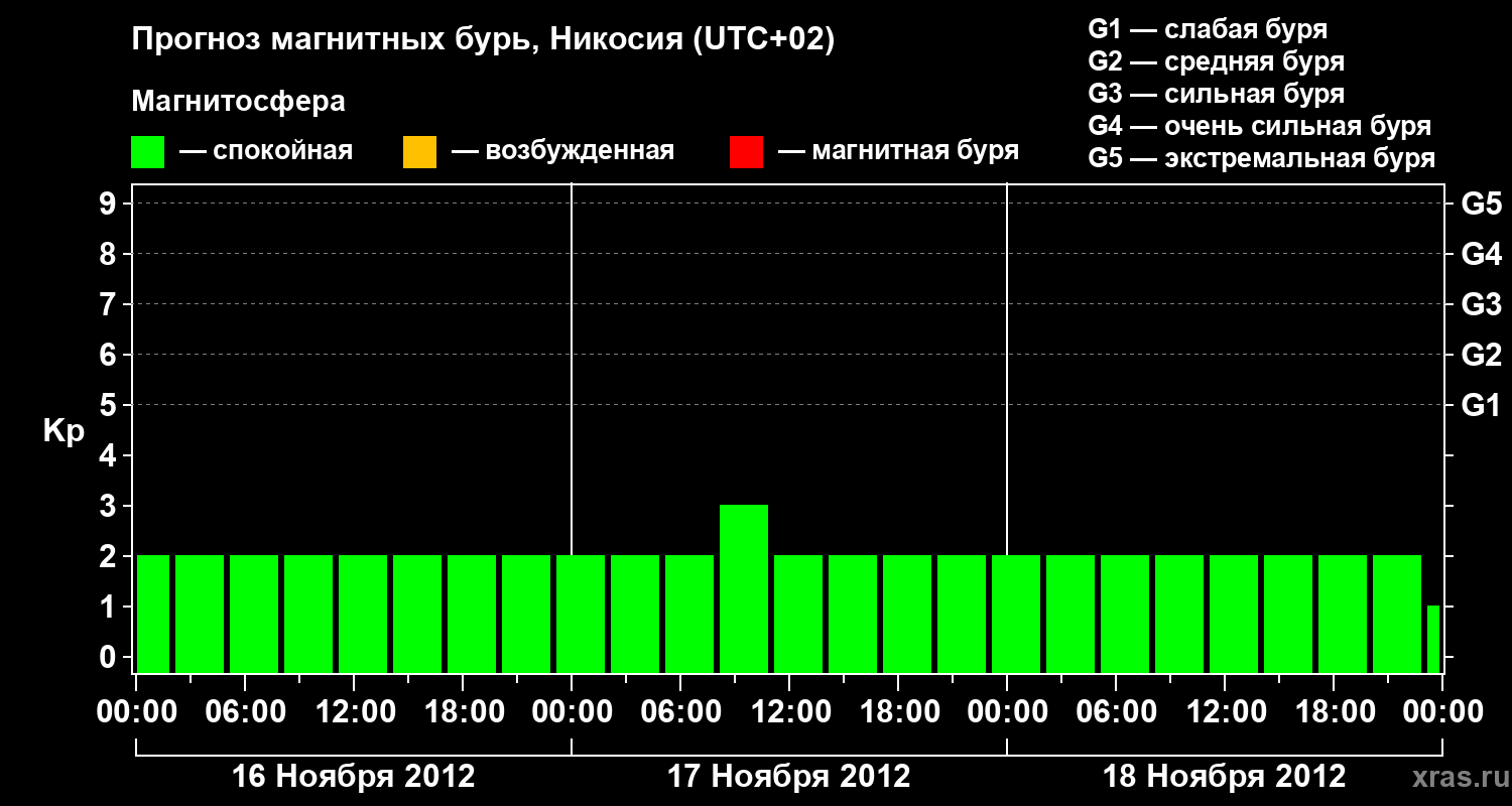 Прогноз магнитных бурь в Никосии — 16 ноября 2012 года